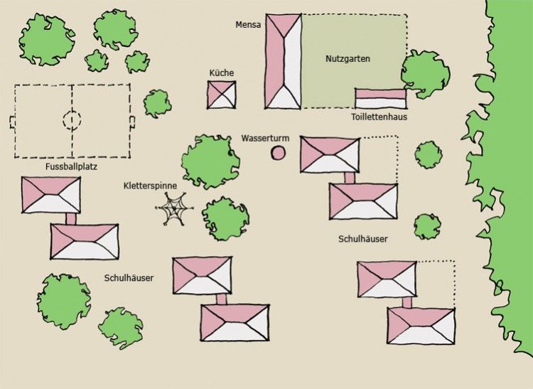 Die schönste Schule des Landes? Das sagen andere. Wir sagen: Seit zwanzig Jahren lernen in der Schule 350 Kinder und spielen gemeinsam unter Cashew-Bäumen in einer der ärmsten Regionen der Welt.