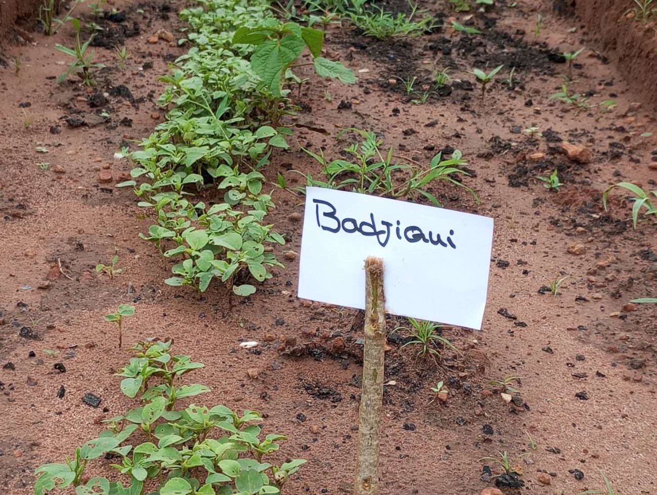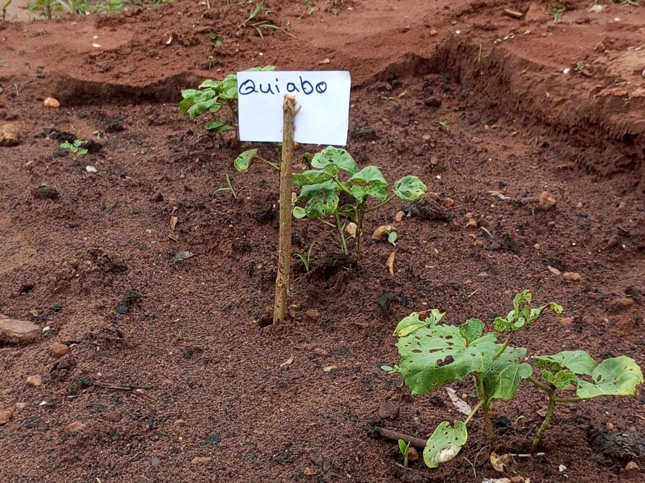 … und Hibiskus. Daraus wird später Tee gemacht. Außerdem auf dem Pflanzplan: Süßkartoffeln, Mais, Sonnenblumen und Gurken.