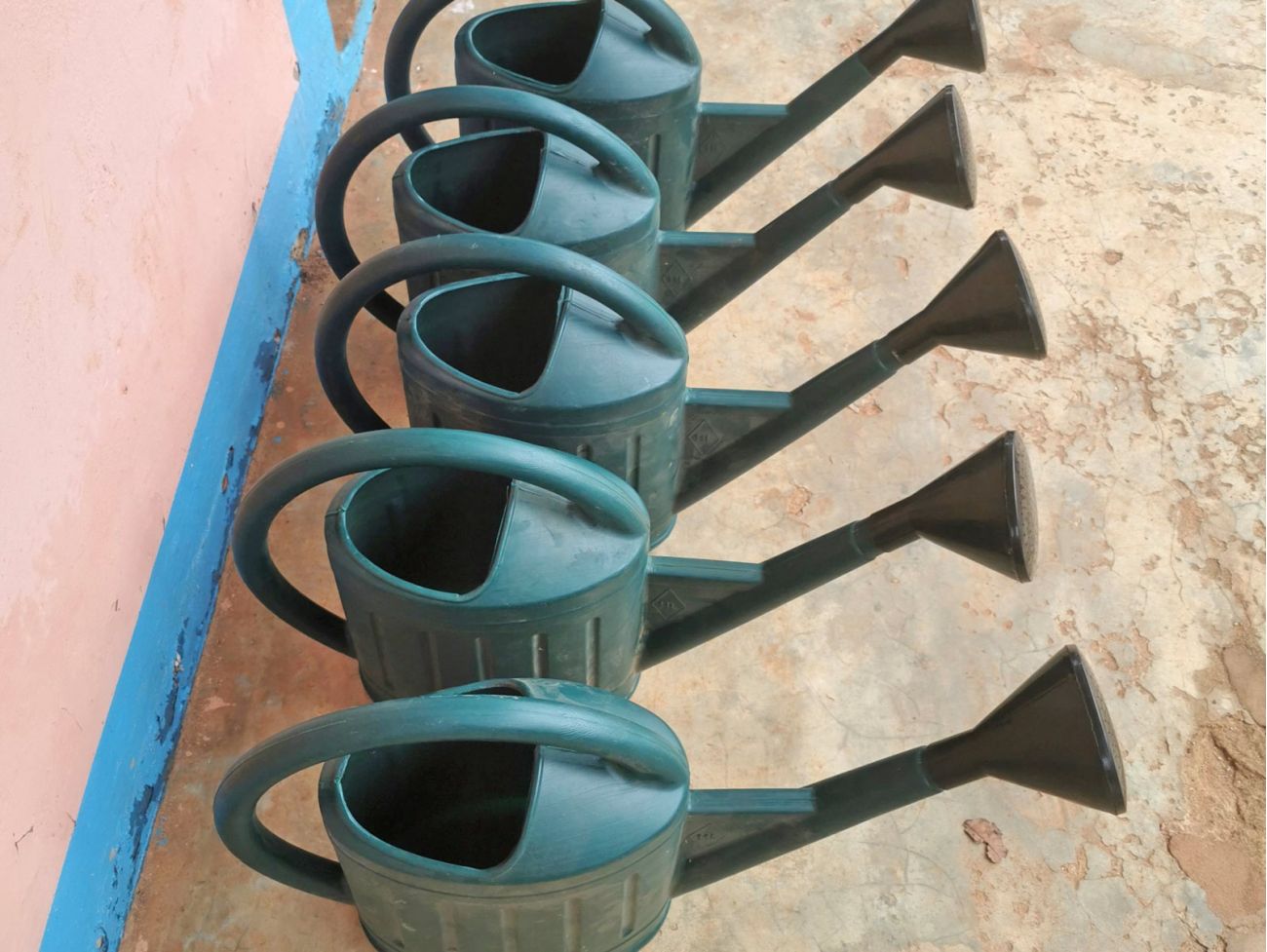 Müssen noch warten auf ihren Einsatz: Unsere neuen Gießkannen für die Trockenzeit. Große Wasserspeicher sind bestellt.